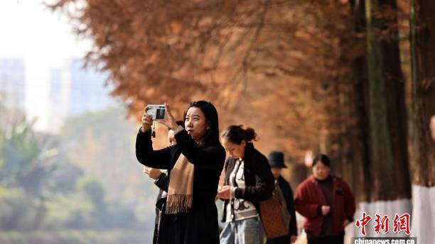 惊艳!成都水杉林迎来颜值巅峰“红妆”引游人