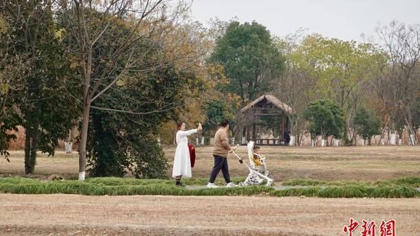 浙江杭州良渚古城遗址公园冬日美景吸引游人