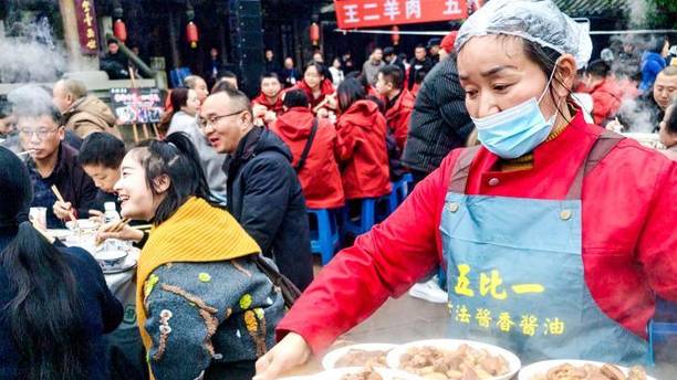 四川合江:古镇千人长街宴 笑迎宾客过冬至