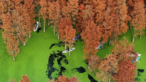 美不胜收!杭州青山湖“水上森林”公园色彩斑斓
