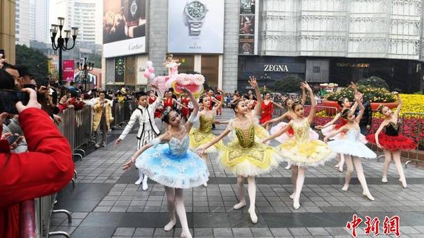 重庆:花车艺术巡游走进解放碑