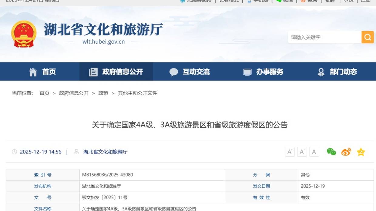 武汉新增4家国家4A级旅游景区,名单公布
